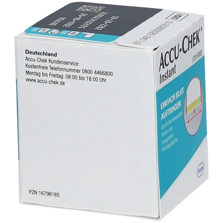 Accu-Chek Instant Teststreifen, 50 Stück – die ideale Lösung für eine einfache und präzise Blutzuckermessung. Diese Teststreifen sind speziell für die Verwendung mit den Accu-Chek® Instant und Accu-Chek® Instant S Blutzuckermessgeräten konzipiert.