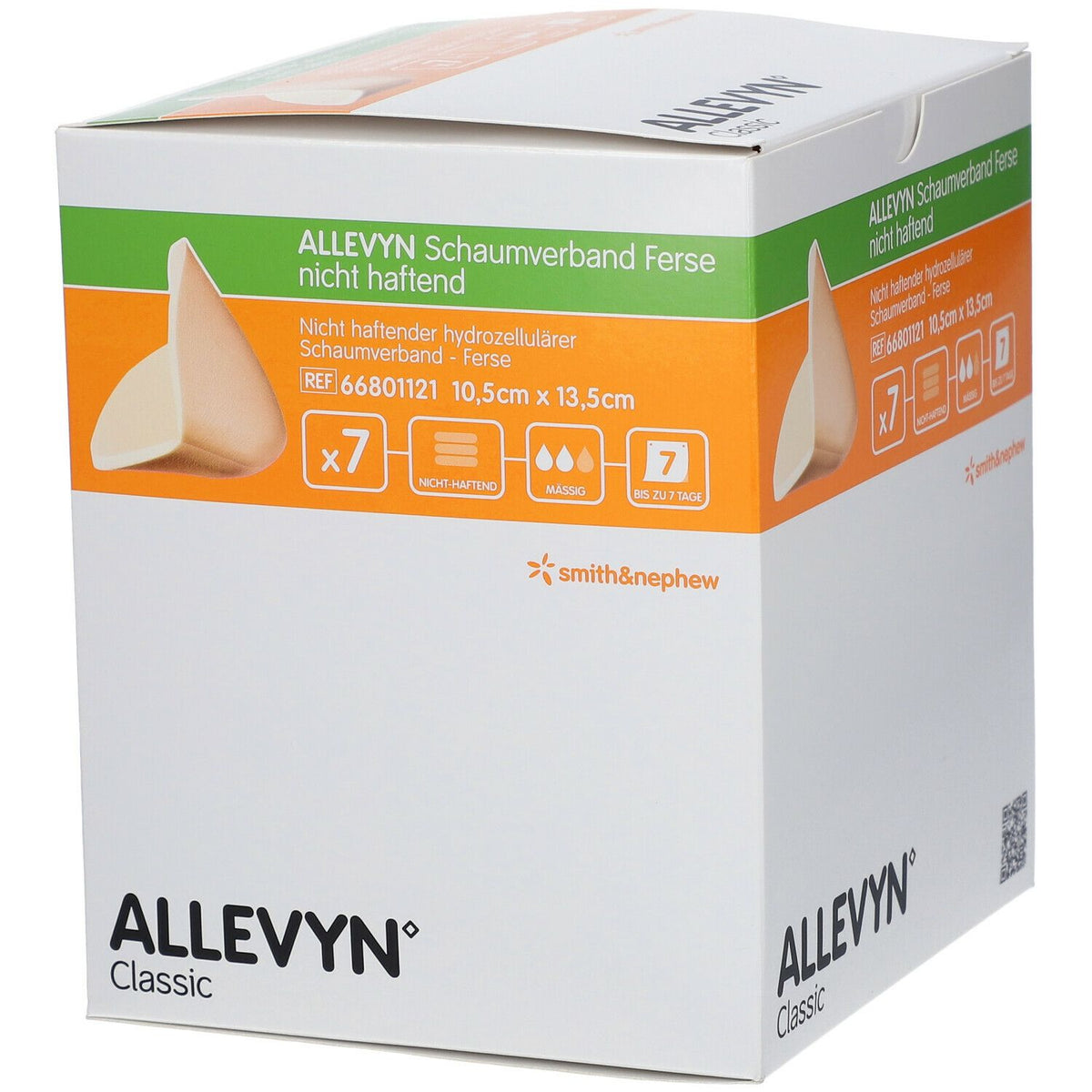 Allevyn Schaumverband Ferse nicht haftend ist ein stark saugfähiger Wundverband, der speziell für die Versorgung von Problemzonen wie der Ferse, Ellbogen, Amputationsstümpfen, Zehen und Hoden entwickelt wurde. Die besondere Form erleichtert die Anwendung in diesen Bereichen. Der Verband kann auf verschiedene Wundgrößen zugeschnitten werden und wird empfohlen, mit einer Fixierung wie OPSITE Flexigrid oder Bandagen kombiniert zu werden.