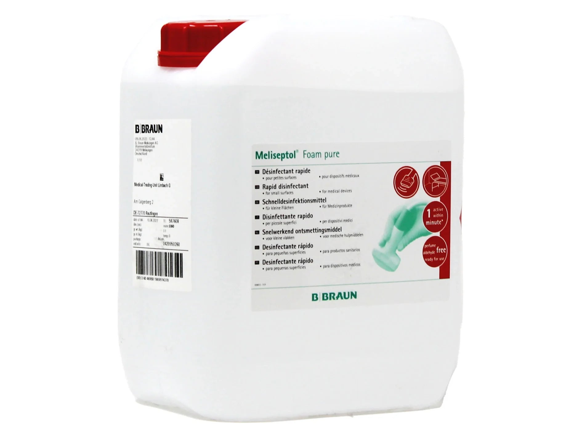 B|Braun Meliseptol® Foam pure ist ein effektiver und sicherer Desinfektionsschaum, perfekt für den professionellen Einsatz in medizinischen und hygienischen Bereichen.