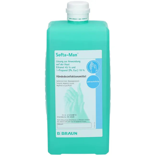 B. Braun Softa-Man Händedesinfektionsmittel – eine gebrauchsfertige, alkoholische Lösung für die zuverlässige und pflegende Händedesinfektion. Das Desinfektionsmittel bietet umfassenden Schutz gegen eine Vielzahl von Erregern und ist gleichzeitig hautschonend.