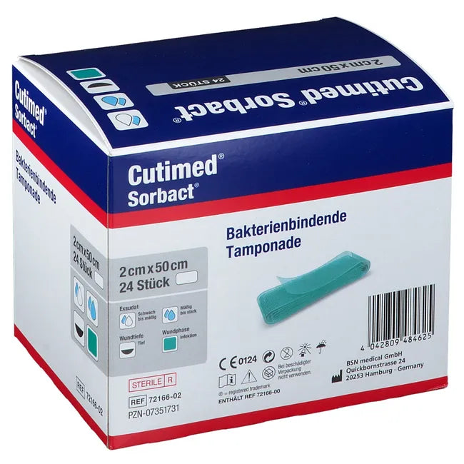 Cutimed® Sorbact Wundverband, 2 cm x 50 cm – ein fortschrittlicher Wundverband zur sicheren und effektiven Bekämpfung von Infektionen. Der Verband reduziert die Keimzahl physikalisch durch hydrophobe Wechselwirkung, ohne chemische Substanzen einzusetzen.
