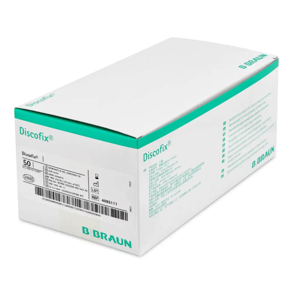 Der Discofix-3 Dreiwegehahn von B.Braun ist in einer Packung mit 50 Stk. erhältlich und bietet eine verlässliche Lösung für medizinische Anwendungen, die hohe Sicherheitsstandards erfordern.