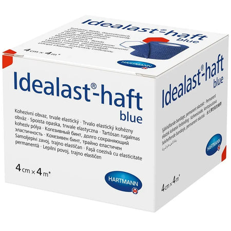 Hartmann Idealast®-haft Color ist die dauerelastische, kohäsive Idealbinde in der Farbe Blau, die Funktionalität mit ansprechender Optik verbindet. Mit kurzem Zug und einer Dehnbarkeit von ca. 90 % ist sie vielseitig einsetzbar.