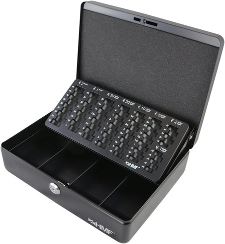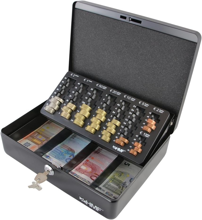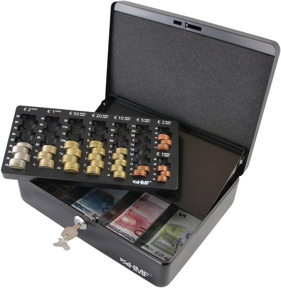 HMF Geldkassette mit Münzzählbrett: Diese Geldkassette kombiniert Funktionalität mit Sicherheit. Ausgestattet mit einem speziellen Euro-Münzeinsatz und einer Geldscheinmulde, ist sie ideal für den geschäftlichen und privaten Gebrauch.