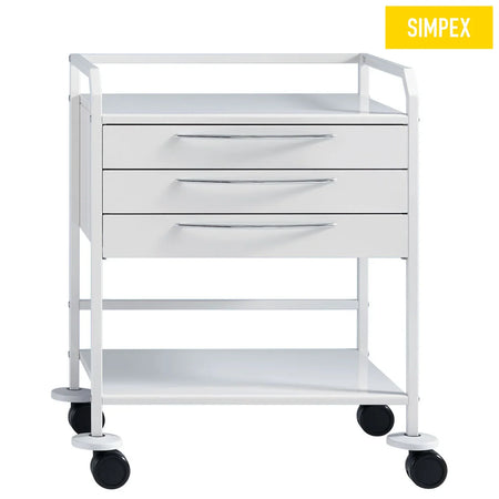 HYGIEN-O-STAR S3 Beistelltisch – ein hochwertiger und vielseitiger Beistelltisch für medizinische Einrichtungen. Der Tisch überzeugt durch seine robuste Stahl-Tischplatte und eine Gesamt-Tragkraft von bis zu 80 kg. Jede Schublade kann individuell mit bis zu 15 kg beladen werden und ist mit einem Selbsteinzug ausgestattet, der den täglichen Gebrauch erleichtert.
