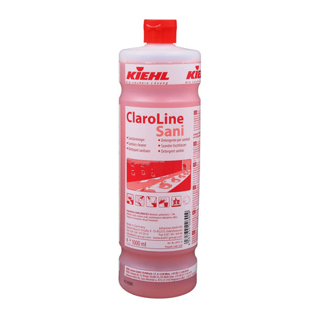 Entdecken Sie den Kiehl Clarida Sani Sanitärreiniger in der praktischen 1-Liter-Flasche, Ihren Allzweckreiniger für eine glänzende und frische Unterhaltsreinigung im Badezimmer. Dieser effiziente Reiniger auf Säurebasis ist speziell entwickelt, um Kalkrückstände, Wasserstein, Urinstein und Seifenreste zuverlässig zu entfernen, während er einen frischen und intensiven Duft hinterlässt.
