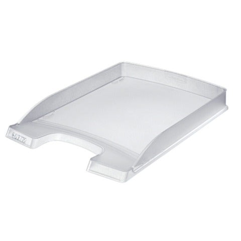 Der LEITZ Briefkorb Flach Plus in der Farbe frost ist die ideale Lösung für eine platzsparende und stilvolle Dokumentenablage.