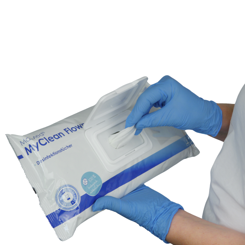 MaiMed MyClean® DS OA Flowpack Desinfektionstücher - Ihre Lösung für eine effektive und umweltschonende Desinfektion von wischbeständigen Oberflächen. Diese gebrauchsfertigen Tücher bieten neben einer hohen Materialverträglichkeit, auch eine starke Reinigungsleistung ohne Alkohol, Aldehyde oder Parfüme.