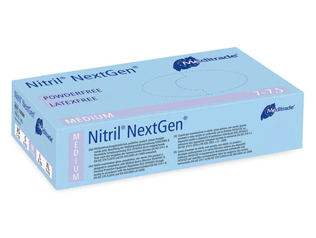 Meditrade Nitril® NextGen® Untersuchungshandschuhe in Größe XS,S,M,L,XL - Bieten hervorragenden Schutz und Komfort für Anwender mit Latex-Allergien. Diese extrem dehnbaren Nitrilhandschuhe bieten latexähnliche Elastizität und Reißfestigkeit, ideal für den Einsatz in einer Vielzahl von Umgebungen.