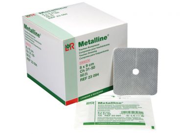 Die Metalline® Tracheo-Kompressen sind speziell entwickelt für die Versorgung von Tracheostoma sowie anderen empfindlichen Wundbereichen. Sie sind anschmiegsam, luft- und wasserdampfdurchlässig und ermöglichen eine effektive Drainage, ohne mit der Wunde zu verkleben.