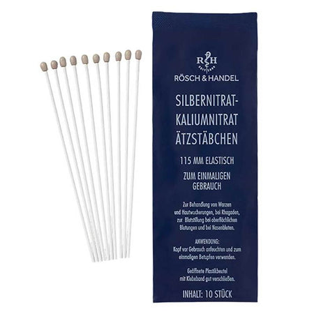 Silbernitrat-Kaliumnitrat Ätzstäbchen 115 mm dienen der gezielten chemischen Kauterisierung überschießender Gewebswucherungen und Warzen.